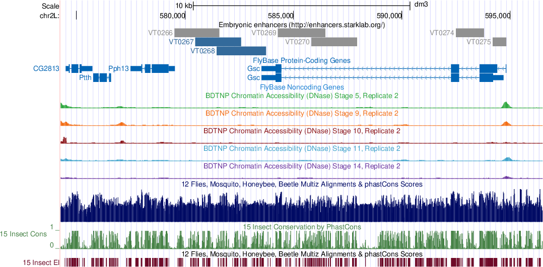 | VT0269 | chr2L 584274–586488 (2214 bp) | Gsc, Pph13 |