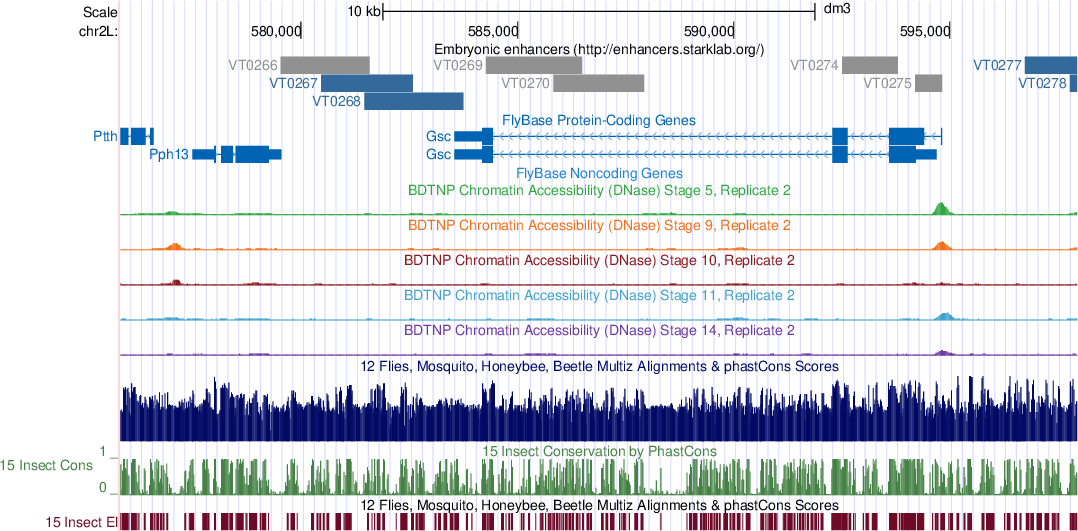 | VT0270 | chr2L 585826–587936 (2110 bp) | Gsc, Pph13 |