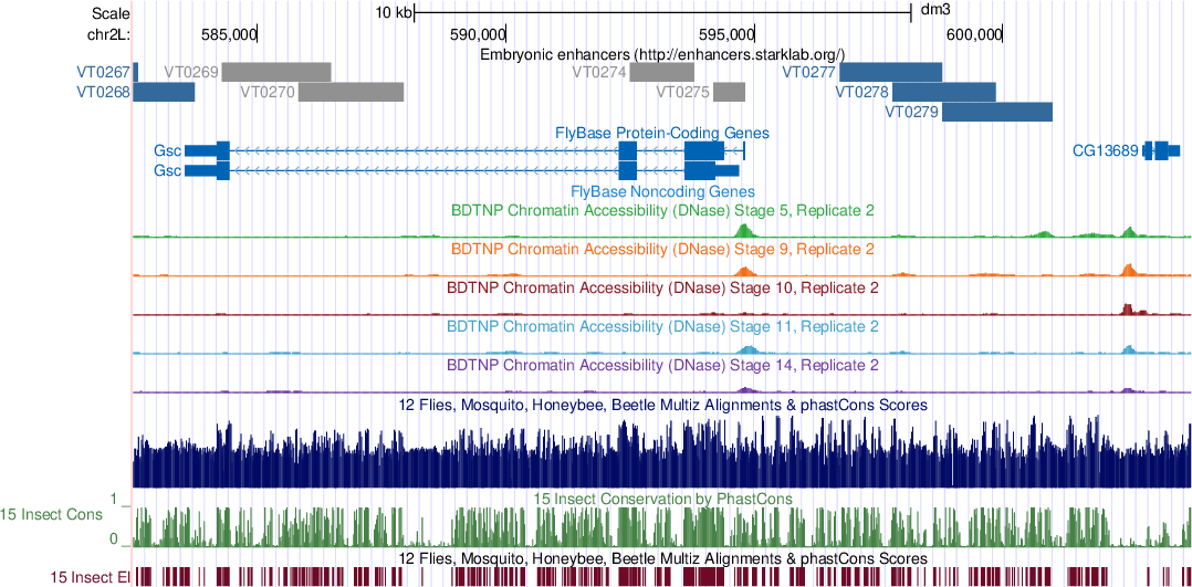 | VT0274 | chr2L 592497–593791 (1294 bp) | Gsc, CG13689 |
