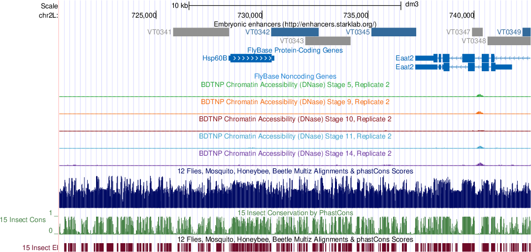 | VT0342 | chr2L 730427–732657 (2230 bp) | Hsp60B, Eaat2 |